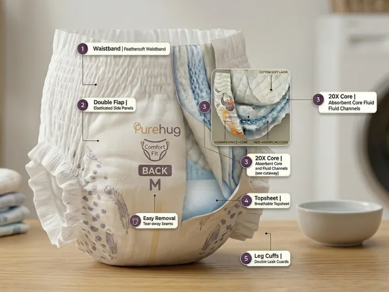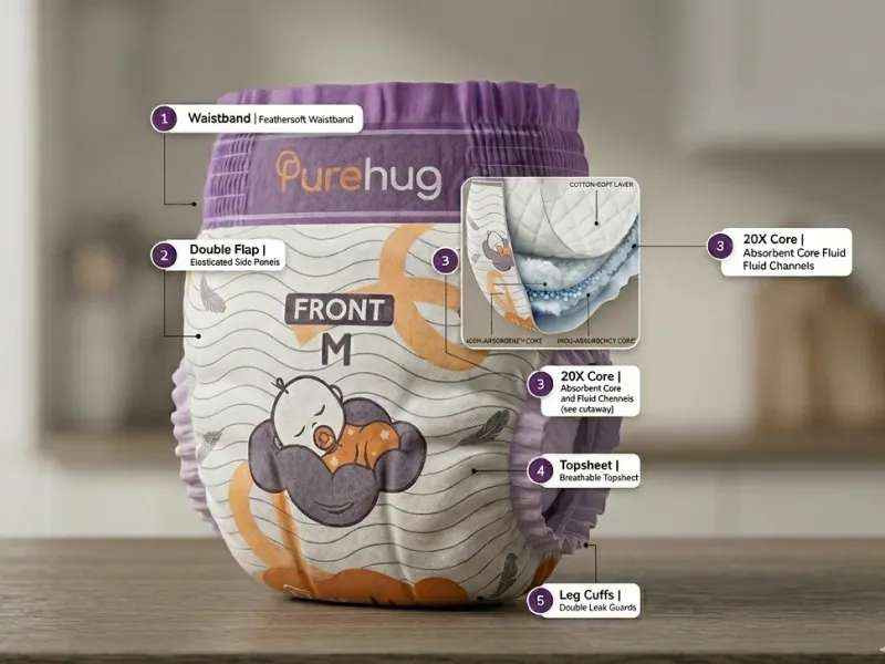 At Purehug, every tiny moment matters. That's why we craft our diapers with the softest breathable materials — keeping your baby dry, comfortable, and content through naps, playtime, and gentle nighttime cuddles.